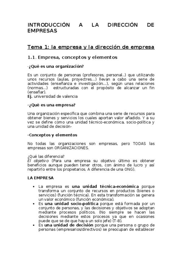 He publicado nuevos apuntes de 1º Introducción a la Direccion de Empresas: DIRECCIÓN DE EMPRESA T2 copia.docx