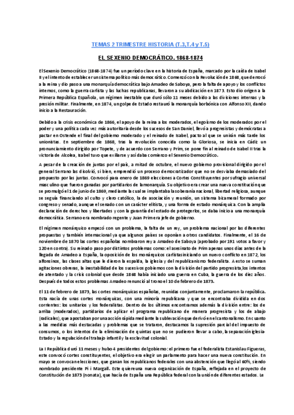 Gracias al primer y último archivo conseguí un 10.00 en el examen parcial del 2º trimestre de Historia de España, ya que contiene los tres temas tratados de una manera concisa, clara y completa. También, pueden acceder a los temas por separado y explicad