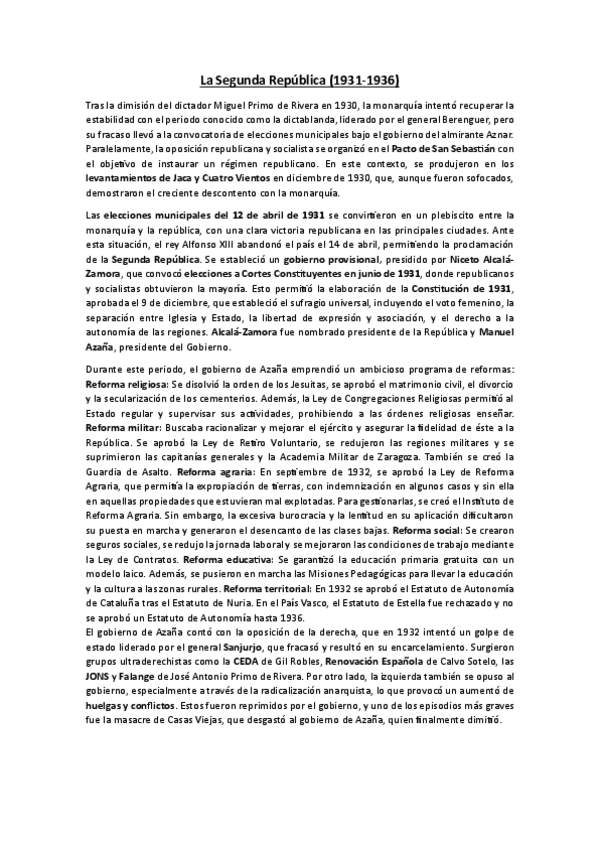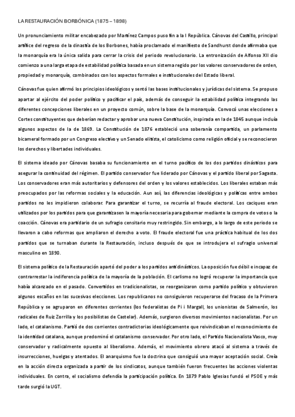 Con este contenido obtuve un 10 en el 3º trimestre de la asignatura de Historia de España en 2º de bachillerato, en concreto gracias a los 4 primeros pdf, que constan de cuatro temas fundamentales explicados de forma clara, breve y completa. Aunque para