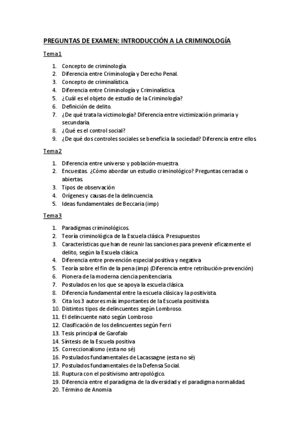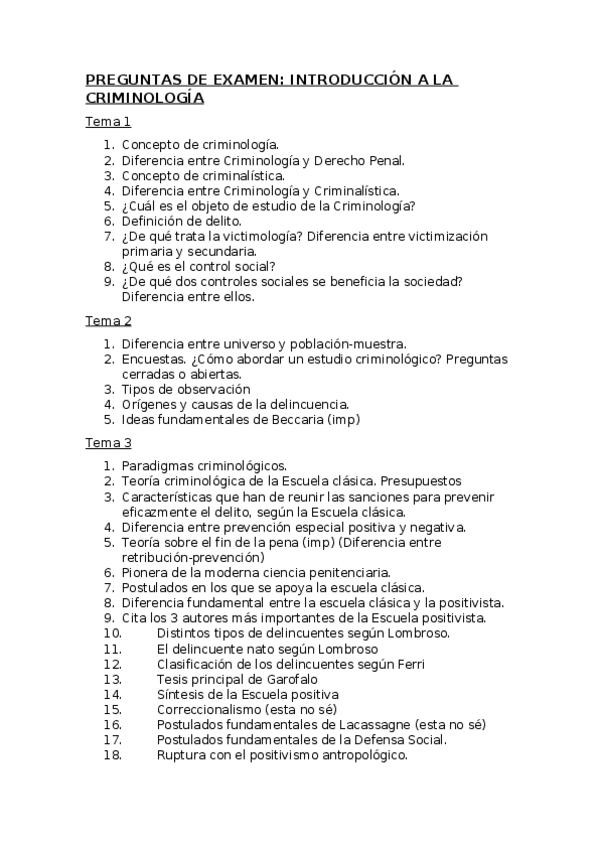 He publicado nuevos apuntes de 1º INTRODUCCIÓN DE CRIMINOLOGÍA: PREGUNTAS DE EXAMEN temas 1-9