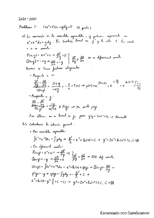 Tiene dos errores tontos, pero están corregidos, sirve de guía para estudiar y comprender los pasos. Si tenéis cualquier duda o veis un error, escribidme, voy a estar subiendo más exámenes.