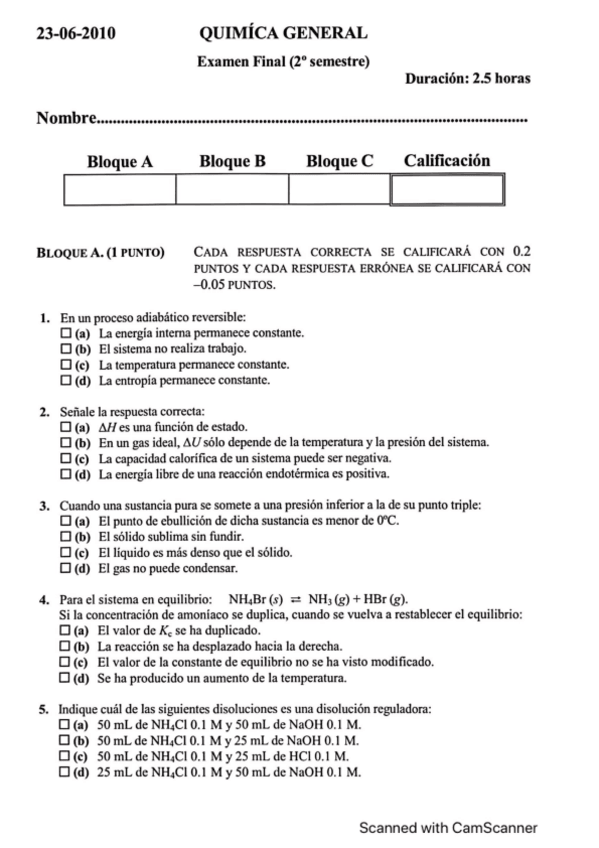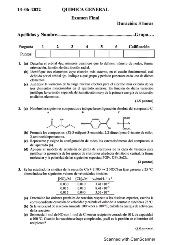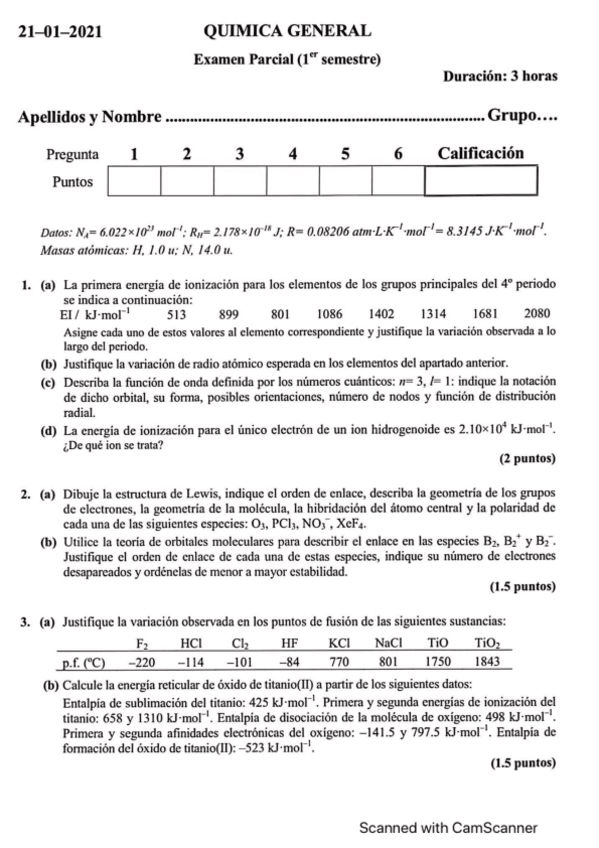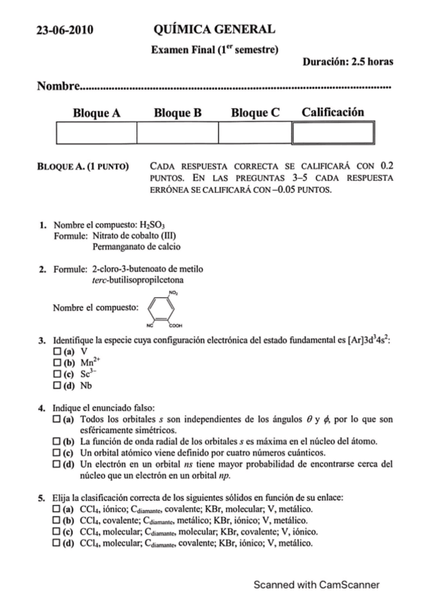 He publicado nuevos examenes de 1º Química General: Exámenes