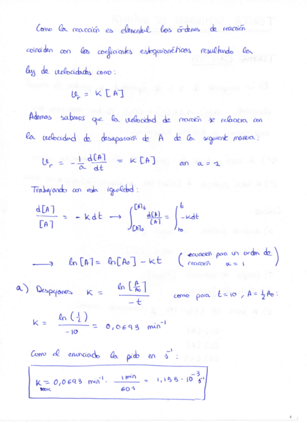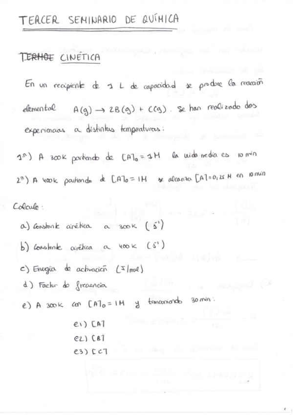 Problema correspondiente al tercer seminario de química sobre cinética y equilibrios. Curso 2014/15.