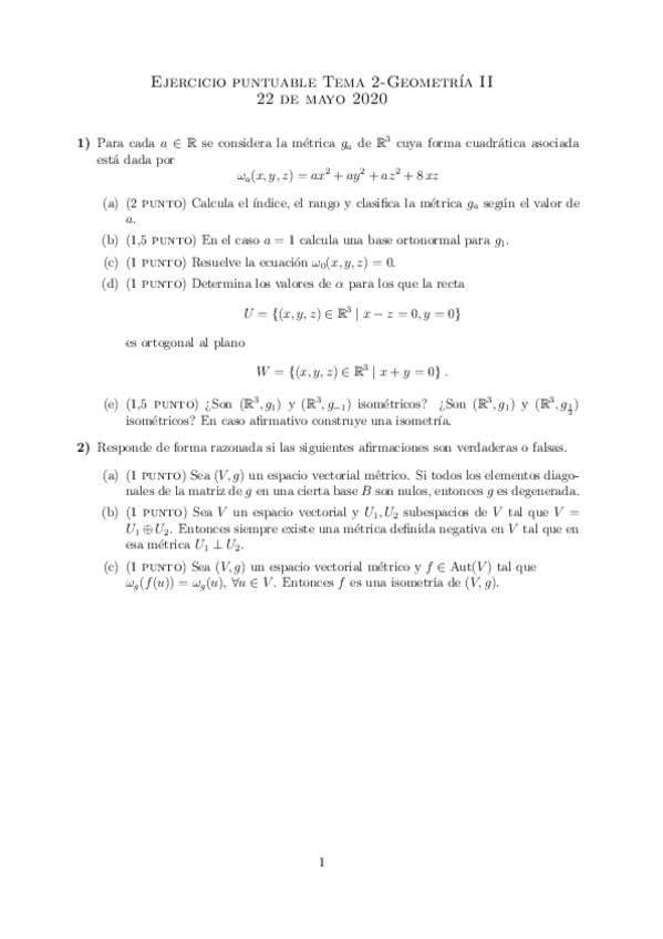 He publicado nuevos examenes de 1º Geometría II: FINAL INFOMATES 1920 (ALGUNOS RESUELTOS)