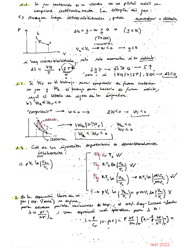 Soluciones test parcial 1 termo 2022 con procedimiento del profesor