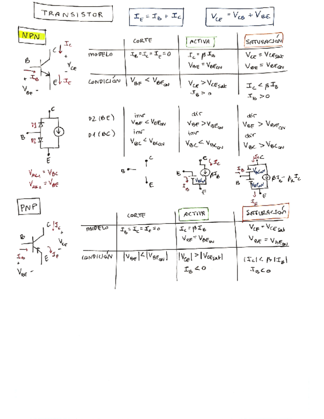 tablas condiciones para las regiones de funcionamiento de transistores NPN y PNP