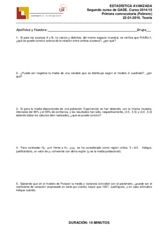 He publicado nuevos examenes de 2º Estadística Avanzada: Convocatoria de Febrero. 22-01-2015. Enunciados y soluciones(1).pdf