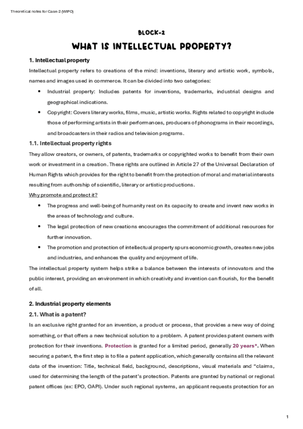 Apuntes complementarios al BLOCK-2 de las asignatura. Apuntes hechos con el pdf WIPO (inglés).