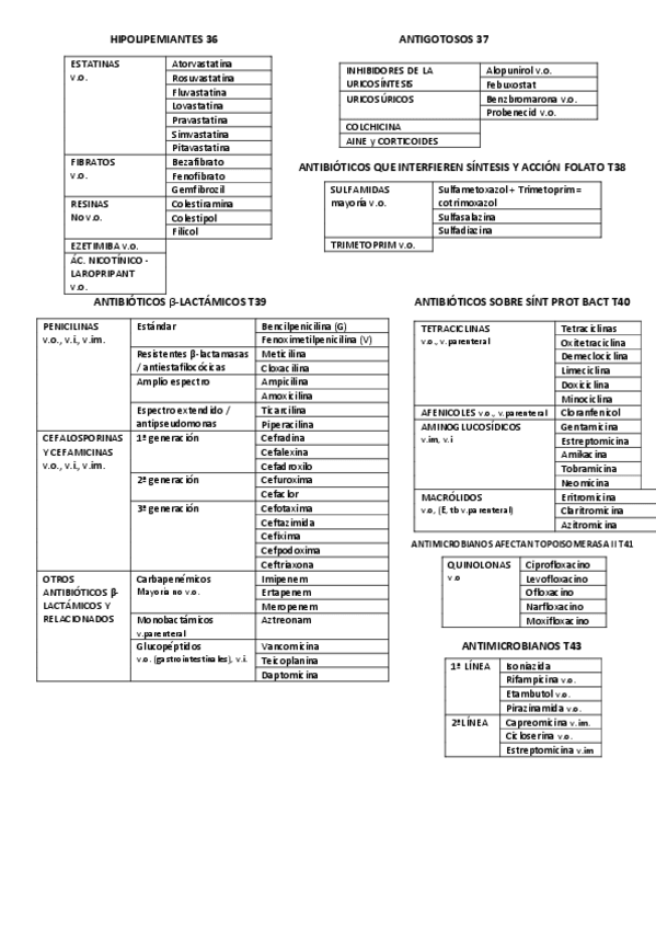 Tablas de fármacos
