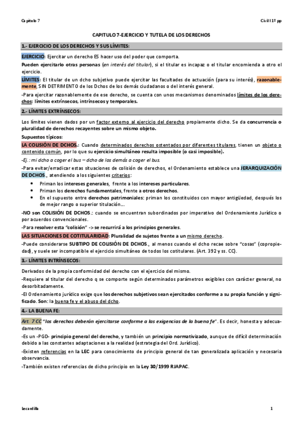 He publicado nuevos apuntes de 1º DERECHO CIVIL I.1: PARTE GENERAL Y PERSONA: Cap 7 Ejercicio y tutela de los derechos.pdf