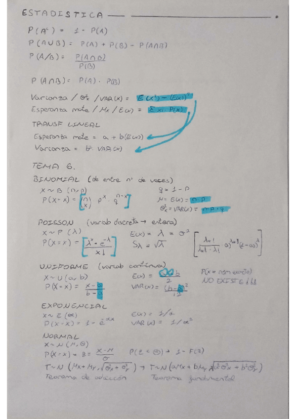 Formulas Todo Estadística y explicación de la resolución de ejercicios por temas.
