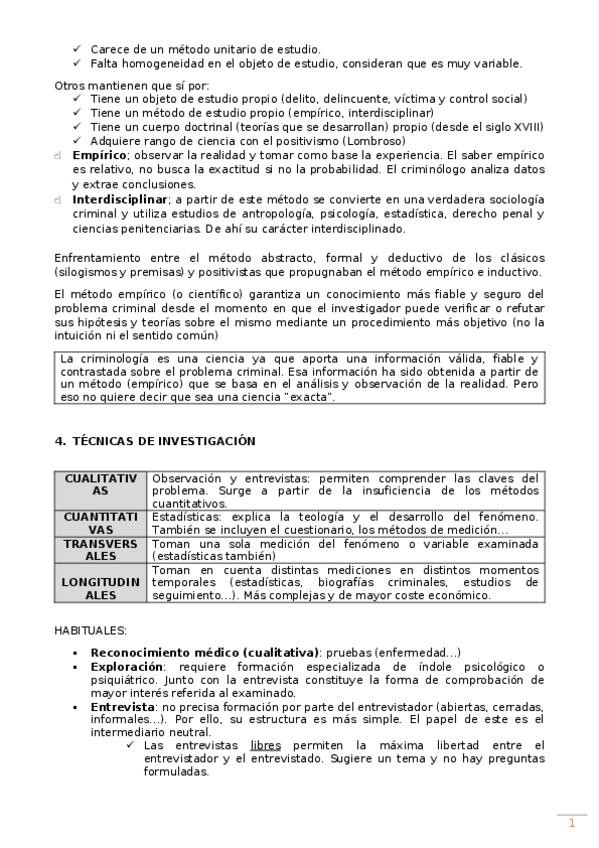 primera parte: la criminología como ciencia empírica e interdisciplinar. Concepto, método, objeto, sistema y funciones de la criminología