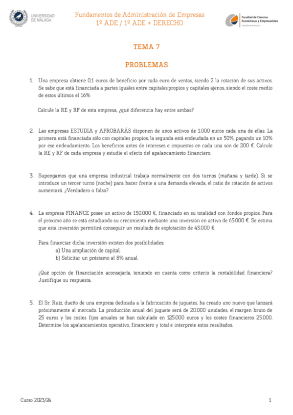 He publicado nuevos ejercicios de 1º Fundamentos de Administración de Empresas: T7-ENUNCIADOS-Y-SOLUCION.pdf