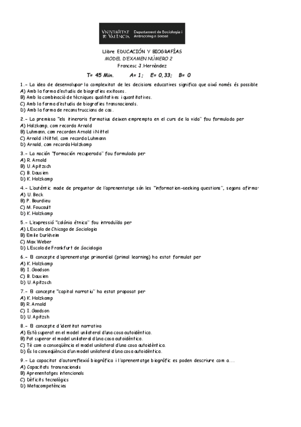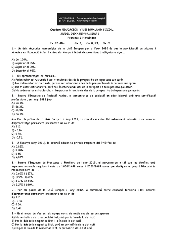 He publicado nuevos examenes de 1º Estructura Social y Educación: Modeldeexamen5respostes.pdf