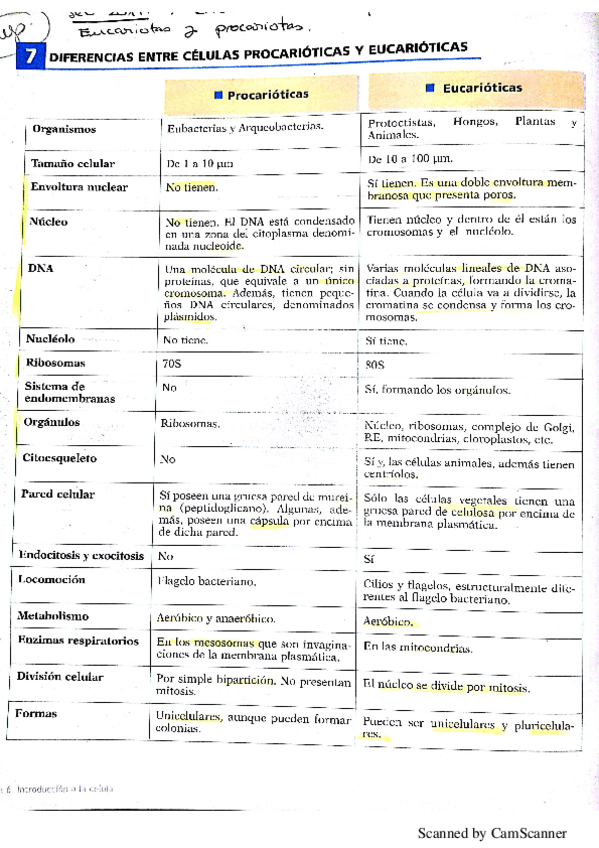 Diferencias organulos y células procariotas y eucariotas