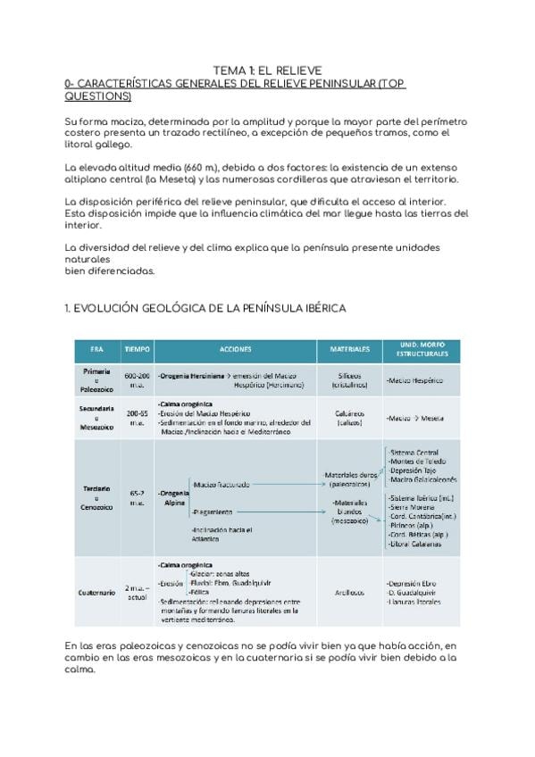 Hola chicos, aquí os dejo mis apuntes del tema 1 de Geografía de 2º de Bachillerato: el relieve. Están organizados de forma clara para que sea más fácil estudiarlos. Espero que os sirvan mucho y os ayuden a entender mejor el tema ?