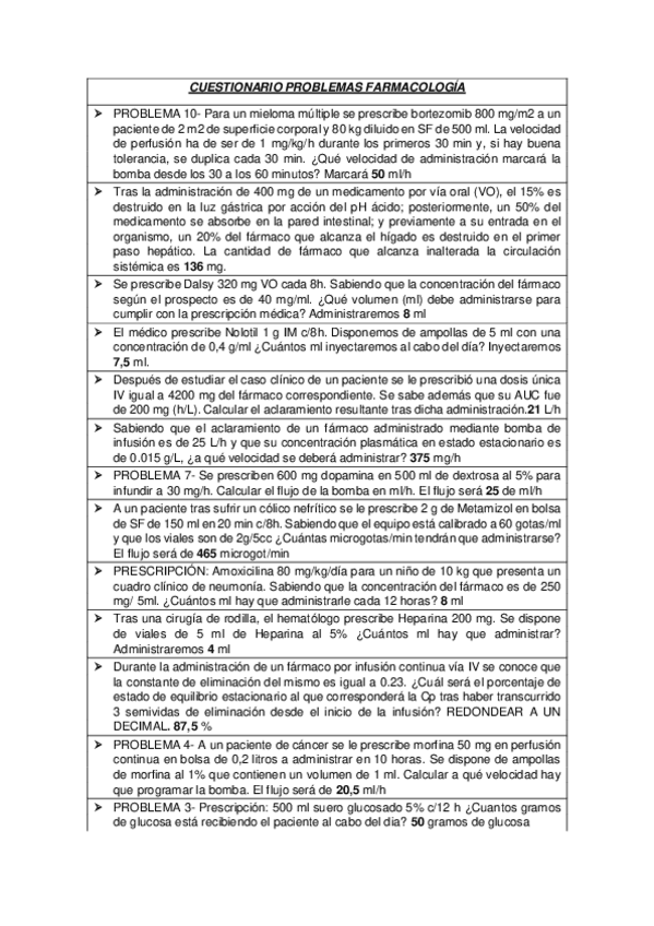 He publicado nuevos ejercicios de 1º Farmacología General: CUESTIONARIO-PROBLEMAS-FARMA.pdf