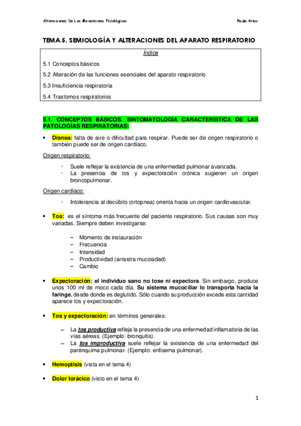 He publicado nuevos apuntes de 1º ALTERACIONES DE MECANISMOS FISIOLÓGICOS: Tema 5. Ap. Respiratorio
