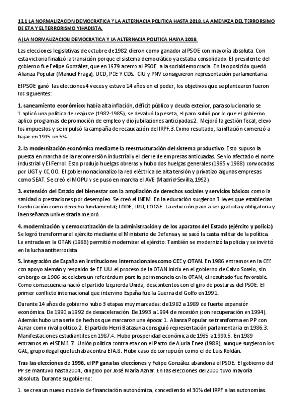 He publicado nuevos apuntes de 2º Historia de España: Tema 13. La democracia (1982-2018):
