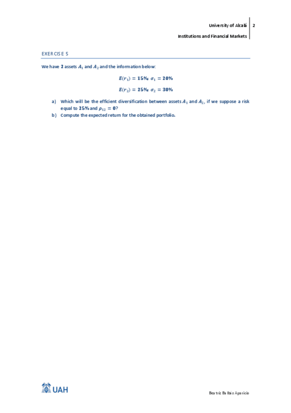 He publicado nuevos ejercicios de 3º Instituciones y Mercados Financieros: 5Exercises-1.pdf