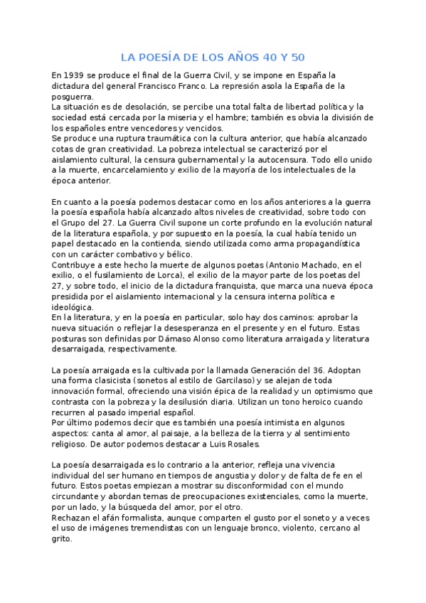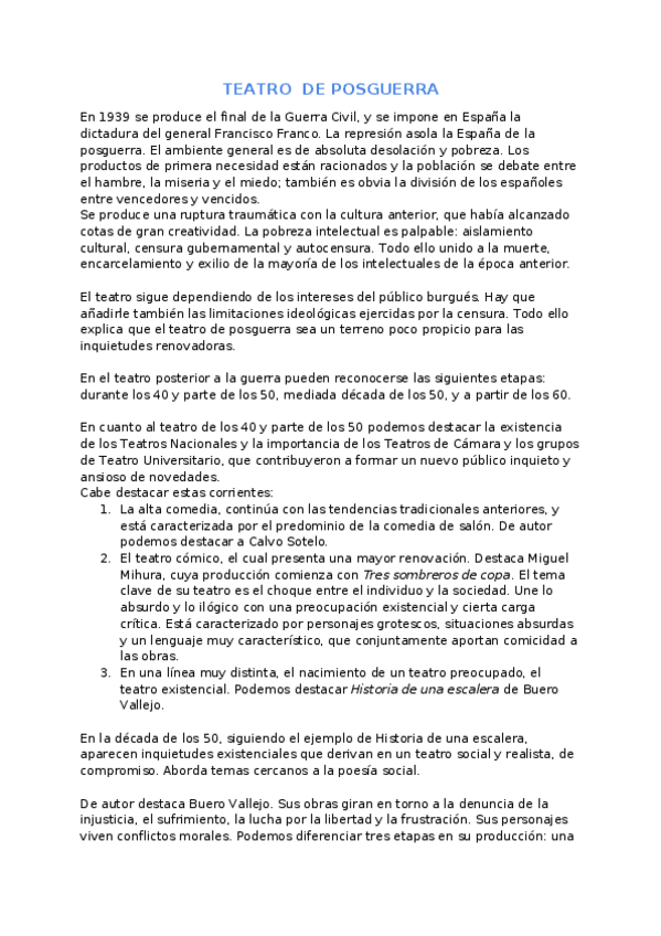 He publicado nuevos apuntes de Lengua Castellana y Literatura II: Literatura postguerra