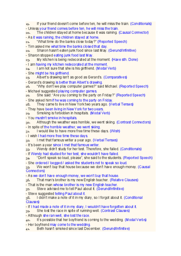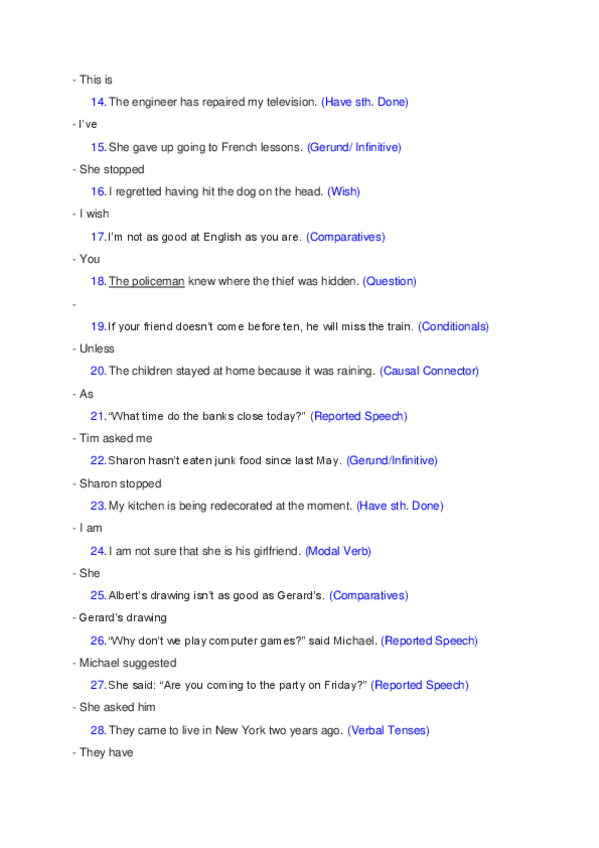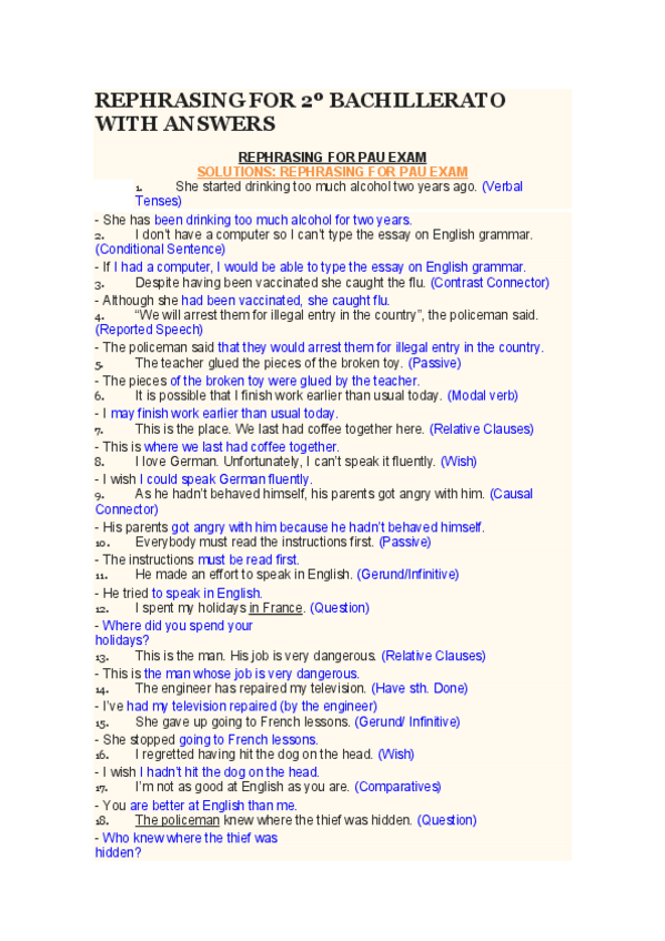 Hola! Acabo de subir un documento con sus respectivas soluciones, sobre "rephrasing", para preparar el examen ABAU de Inglés.