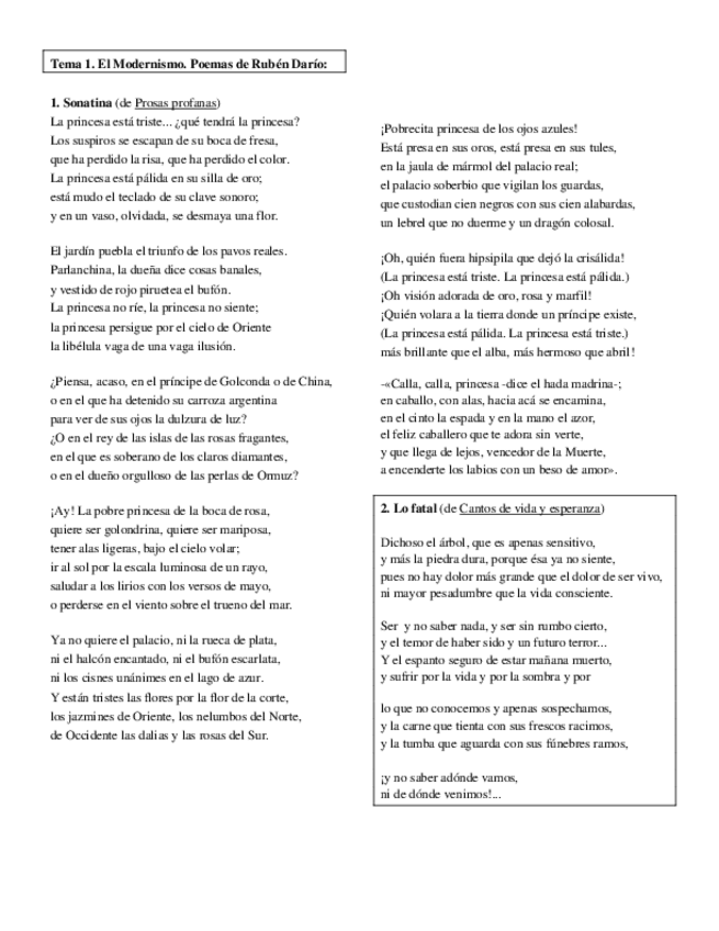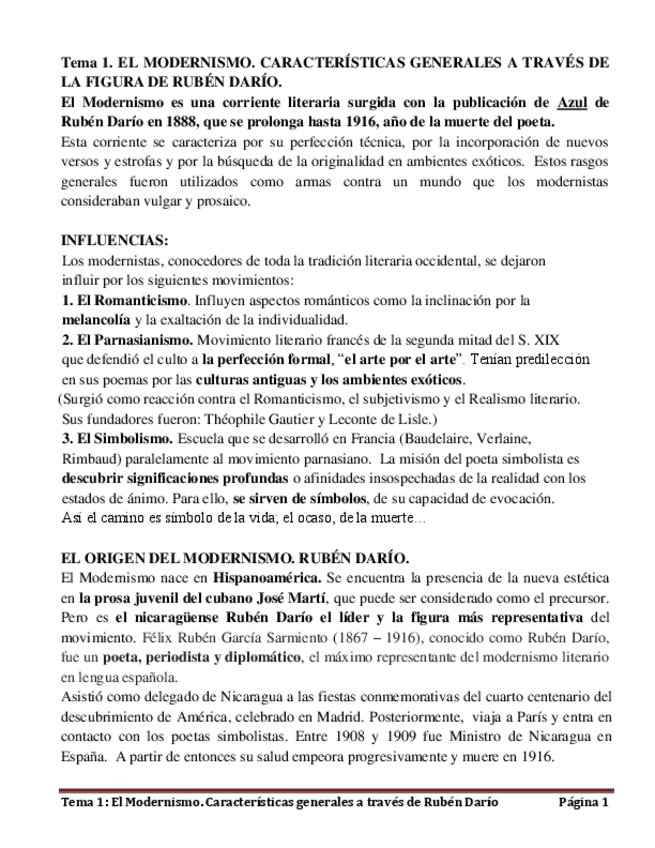 Tema 1 Literatura - El Modernismo