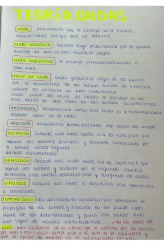 Teoría esquematizada de ondas y cuántica de 2 Bachillerato