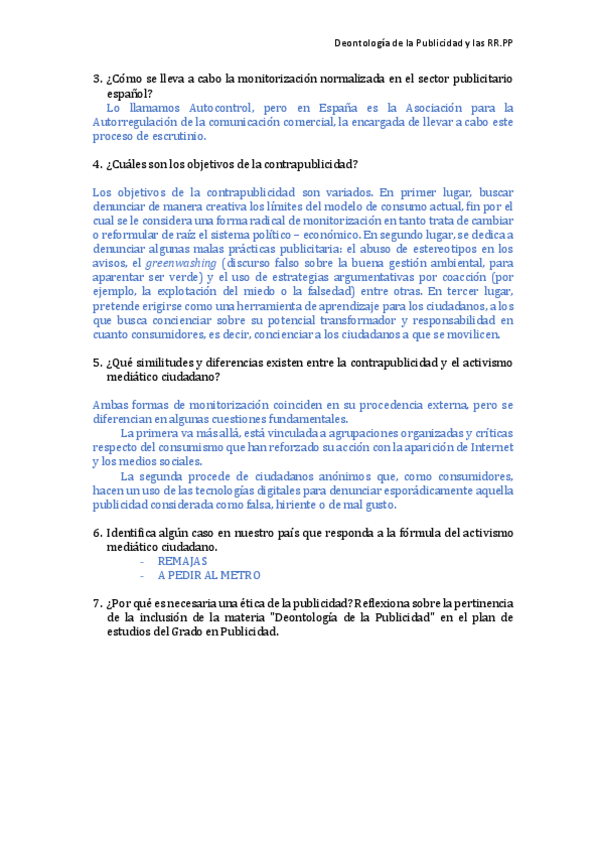 He publicado nuevos apuntes de 3º DEONTOLOGÍA DE LA PUBLICIDAD Y DE LAS RELACIONES PÚBLICAS: Prácticas_8-11 (Examen Deontologia ).pdf