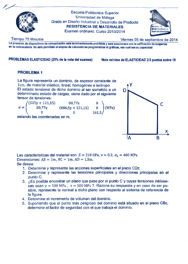 He publicado nuevos examenes de 2º Resistencia de Materiales: sept2014-diseno-industrial.pdf