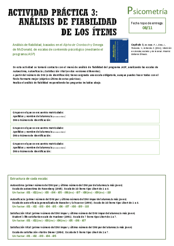 He publicado nuevos practicas de 3º Psicometría: Prácticas entregables