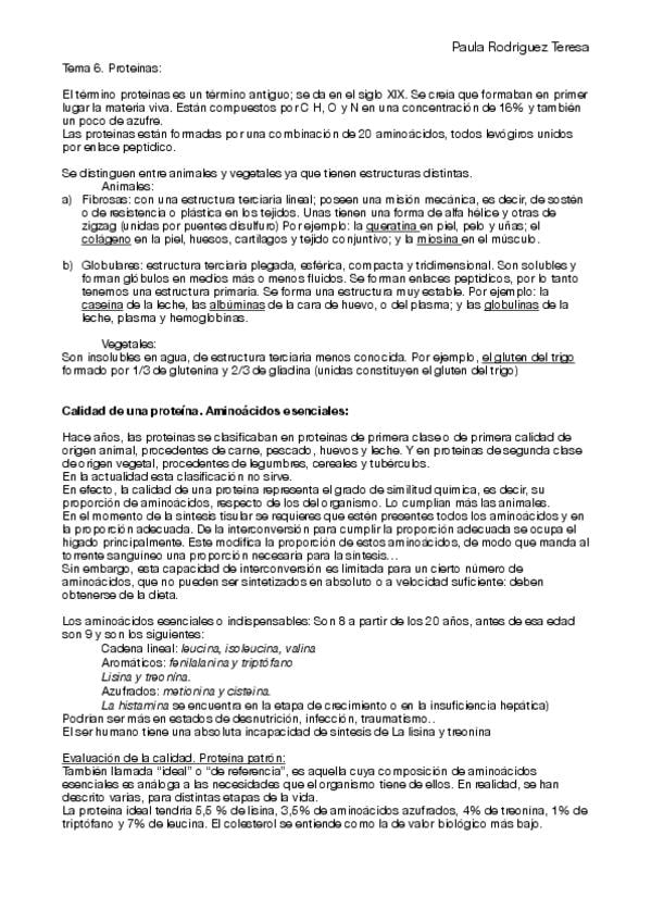 He publicado nuevos apuntes de 3º Nutrición y Bromatología: Tema 6. Proteínas. .pdf