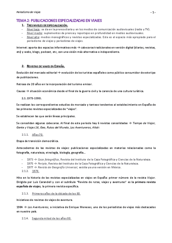 He publicado nuevos apuntes de 4º Periodismo de Viajes: Temario