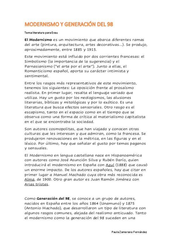 Tema 1 - Modernismo y G.98 (EVAU)