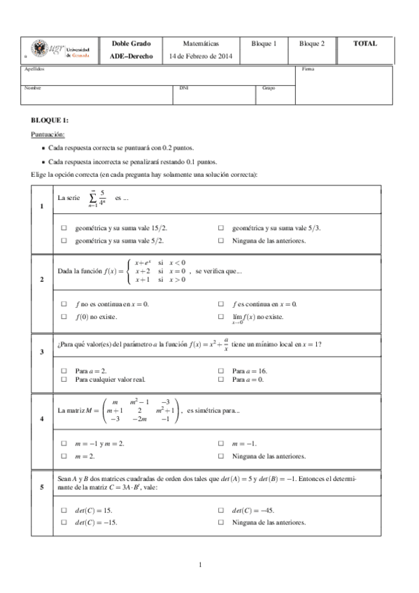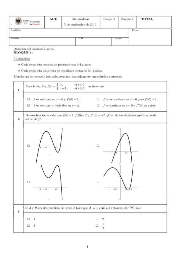 He publicado nuevos apuntes de 1º Matemáticas Empresariales: Exámenes