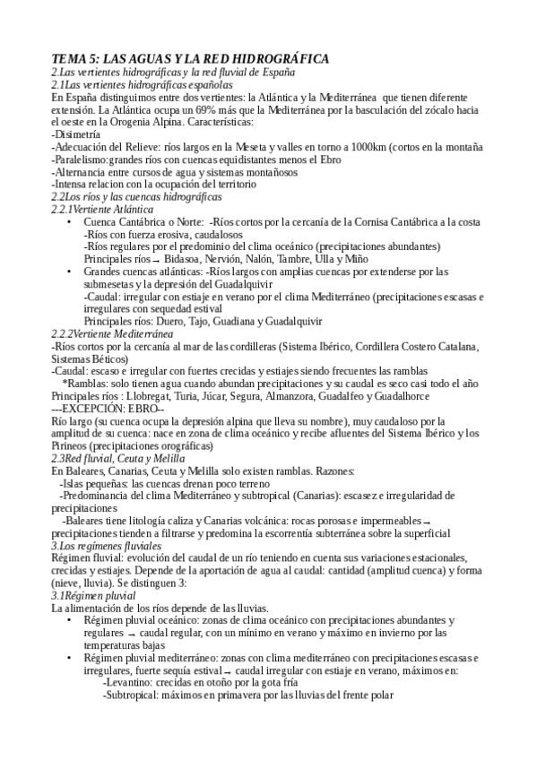 Vertientes y cuencas hidrográficas de España. APUNTES PARA LA PAU