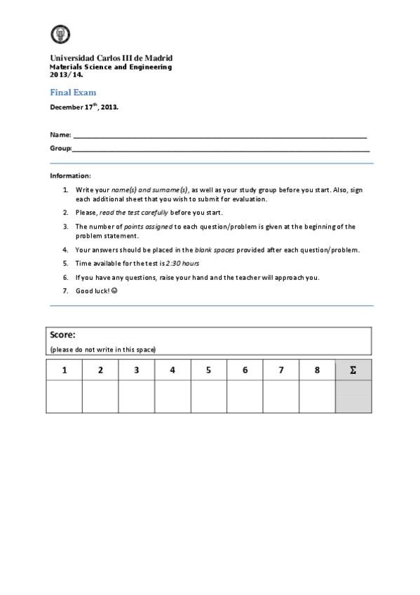 He publicado nuevos examenes de 2º Ciencia e Ingeniería de Materiales: Exam Dec 2013.pdf