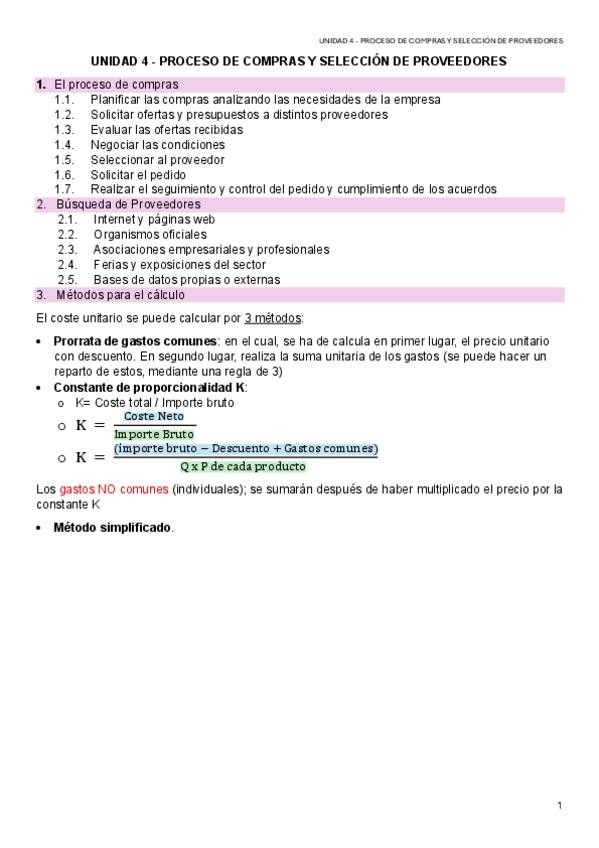 Prorrata de gastos comunes. Constante de proporcionalidad K. 1. El proceso de compras 2. Búsqueda de Proveedores 3. Métodos para el cálculo