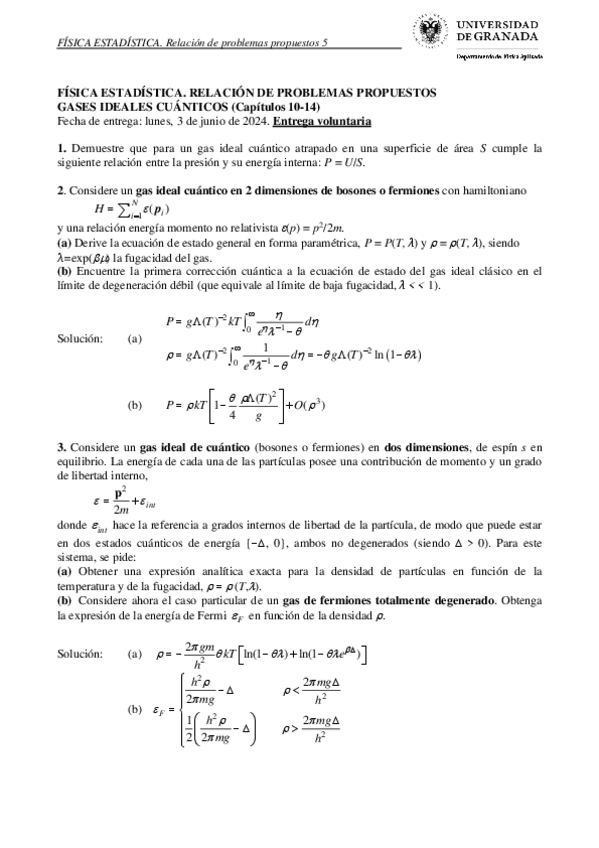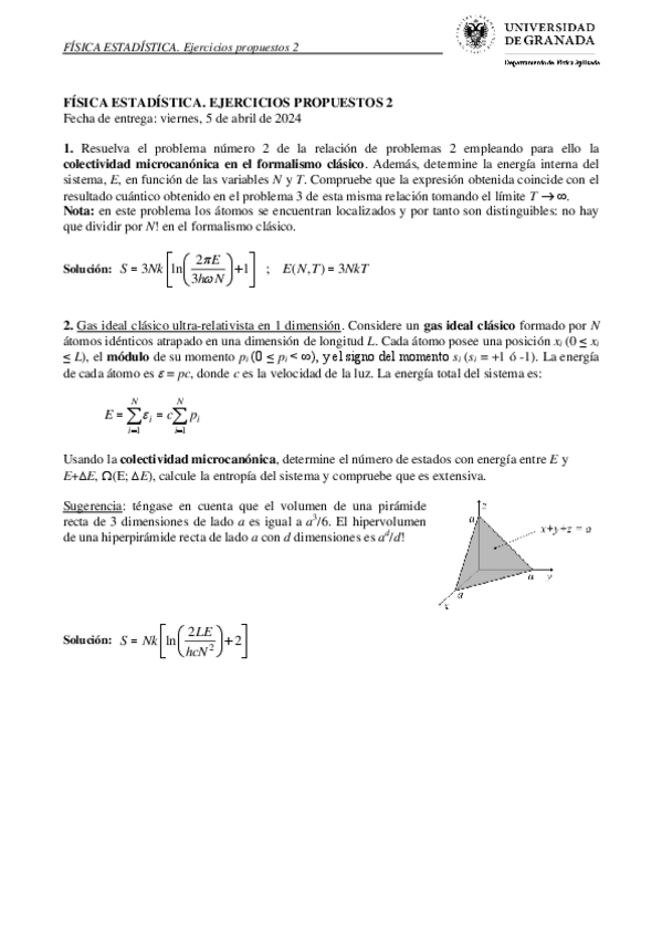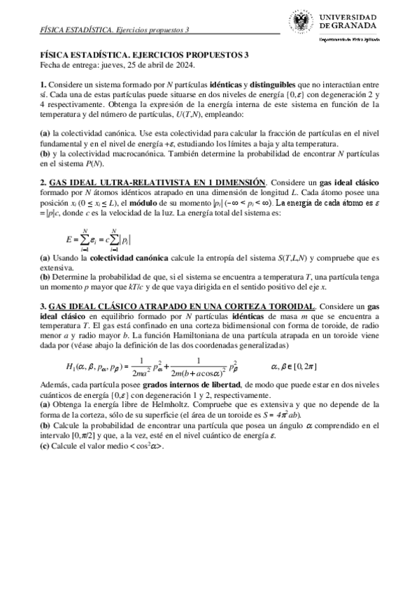 He publicado nuevos ejercicios de 3º Física Estadística: PropuestosResueltos