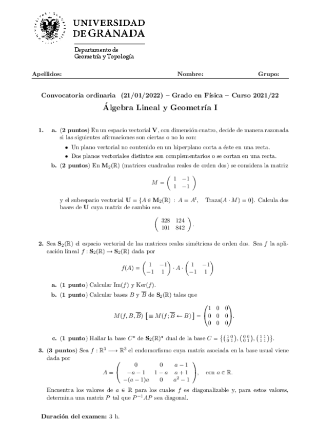 He publicado nuevos apuntes de 1º Álgebra Lineal y Geometría I: ExamenFinalALyG12022-01-21.pdf