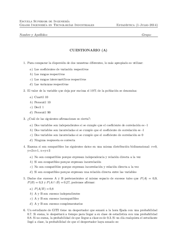 He publicado nuevos examenes de 1º Estadística: cuestionario_julio2014 ESTADISTECA.pdf