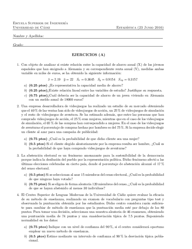 He publicado nuevos examenes de 1º Estadística: ejercicios_junio2016 ESTADISTICA.pdf