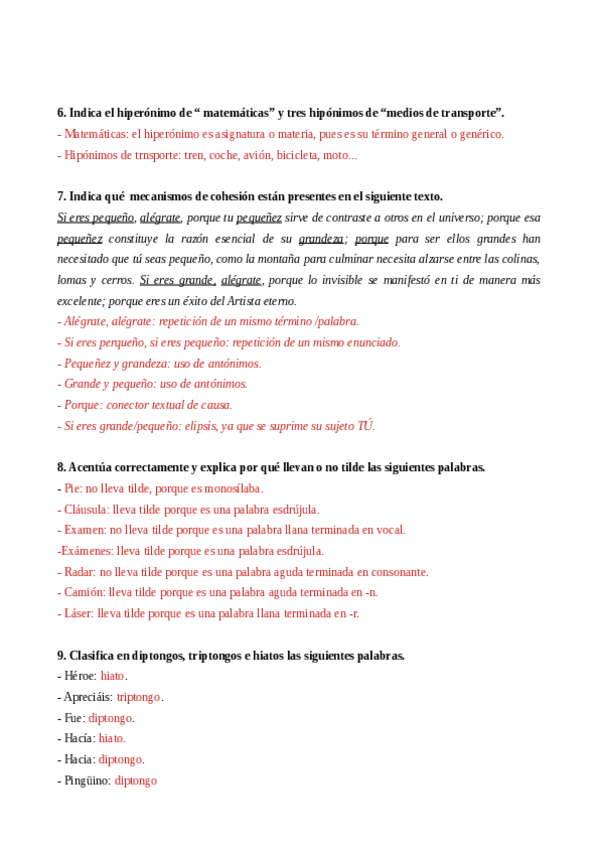 solucionario ejercicios elementos del lenguaje lengua castellana 2º eso