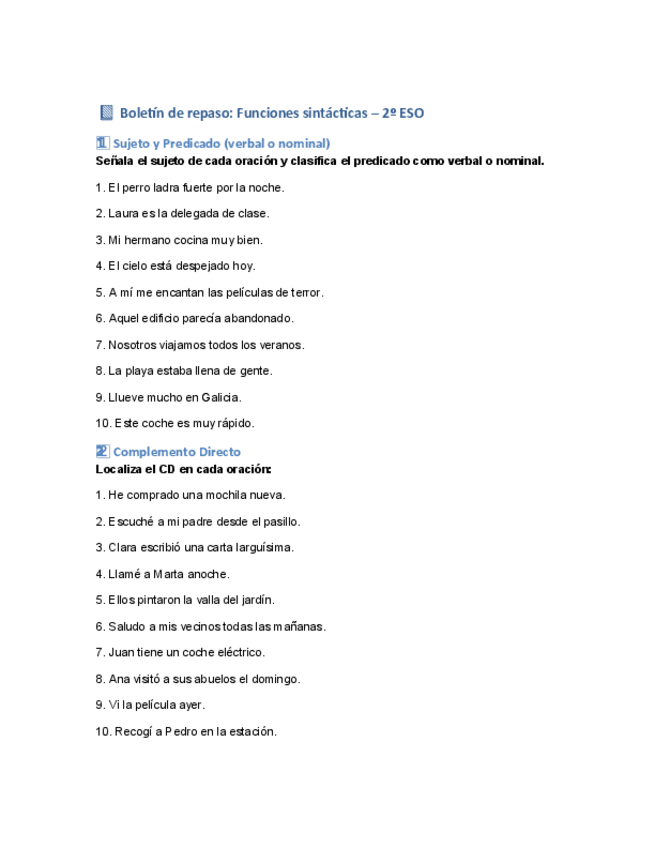 He publicado nuevos ejercicios de 2º Lengua Castellana y Literatura: Boletinrepaso-funcionessintacticas2-ESO-A.pdf