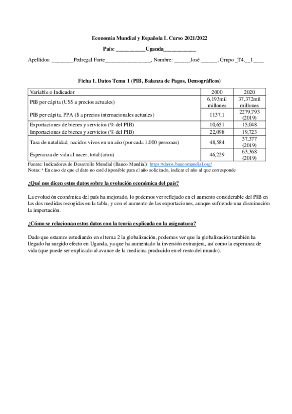 He publicado nuevos trabajos de 2º Economía Mundial y Española I: FICHAS UGANDA