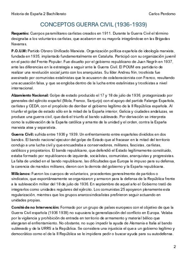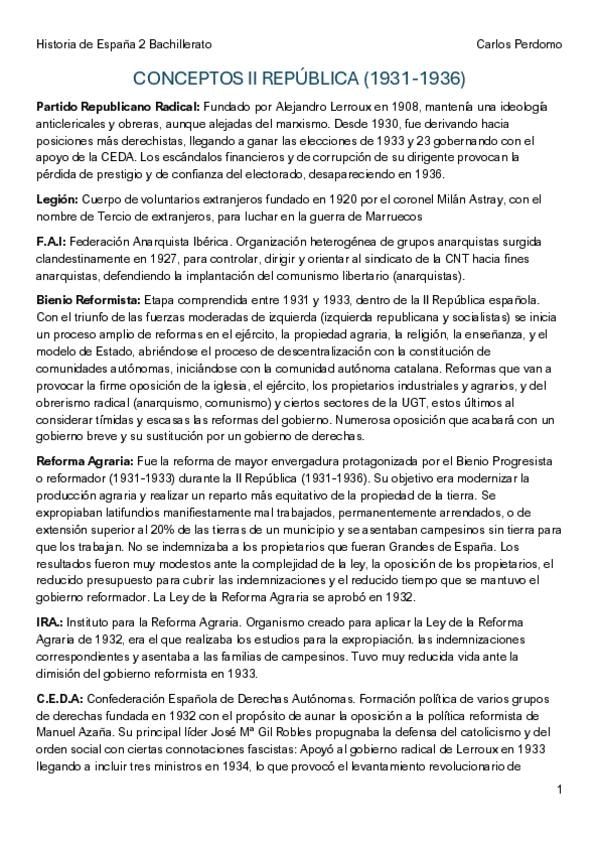 Posibles conceptos de la II REPÚBLICA y sus definiciones para el examen de Historia de España PAU