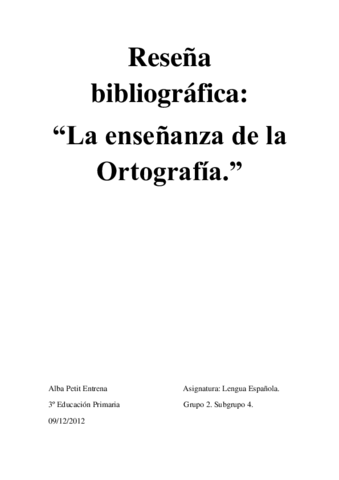 He publicado nuevos trabajos de 3º Lengua Española y Su Didáctica: Reseña bibliográfica.pdf