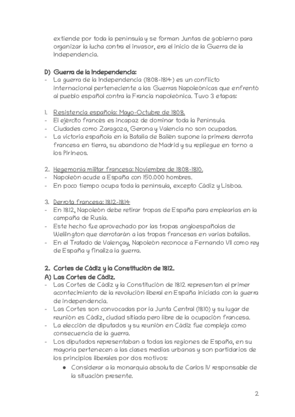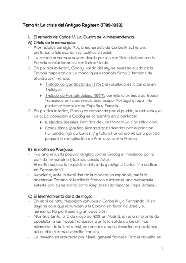 Tema 4: La crisis del Antiguo Régimen (1788-1833). Puntos resumidos en una cara y media