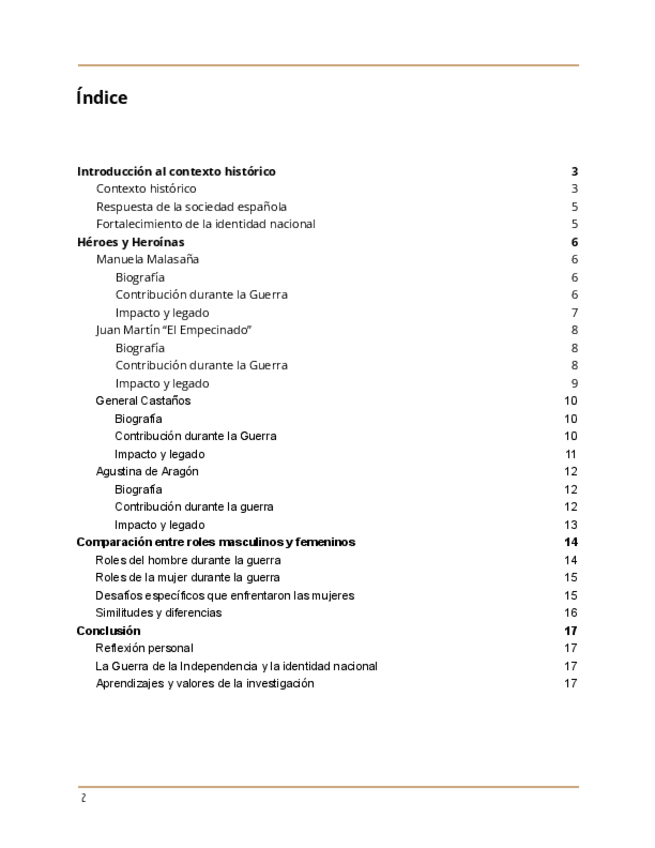 Trabajo sobre la guerra de la Independencia