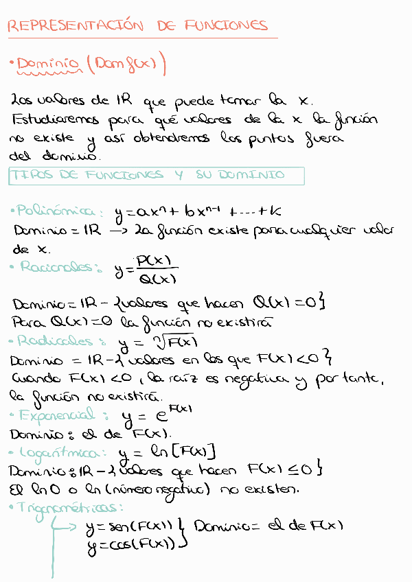 Resumen del estudio de funciones y su representación para Bachillerato